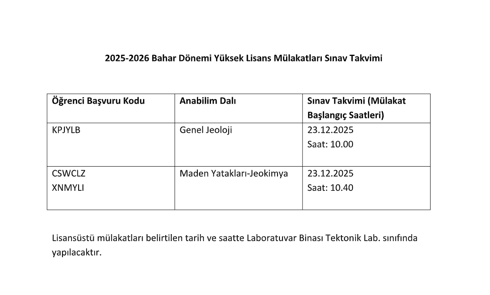 2025-2026 Bahar Dönemi Yüksek Lisans Mülakatları Sınav Takvimi